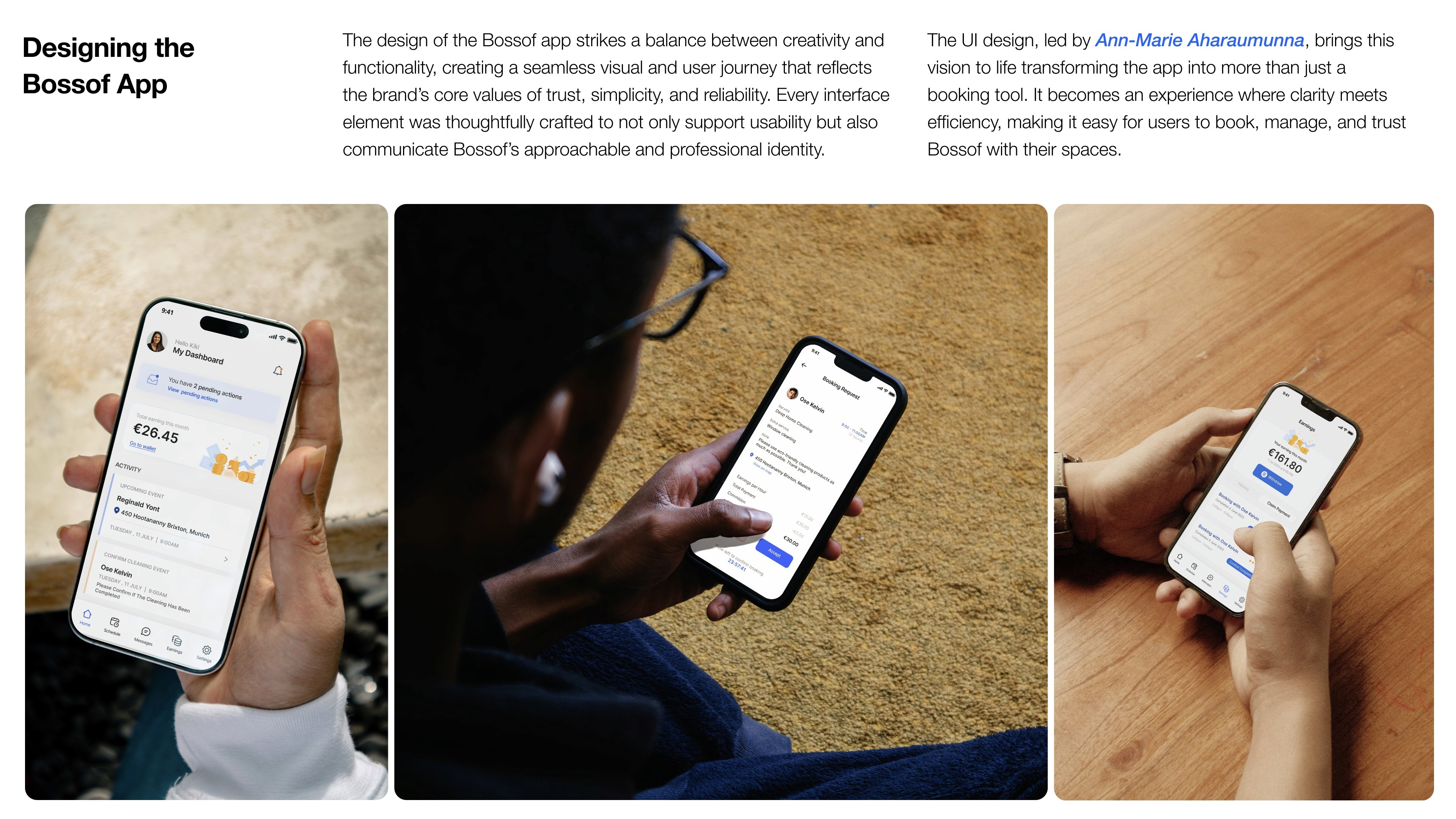 The final product is a streamlined, user-friendly app that makes booking cleaners effortless. Bossof simplifies how people care for their spaces and ensures every user from homeowners to managers feels supported, informed, and in control. The outcome is a brand and product that turns everyday cleaning into something simple, smart, and stress-free.