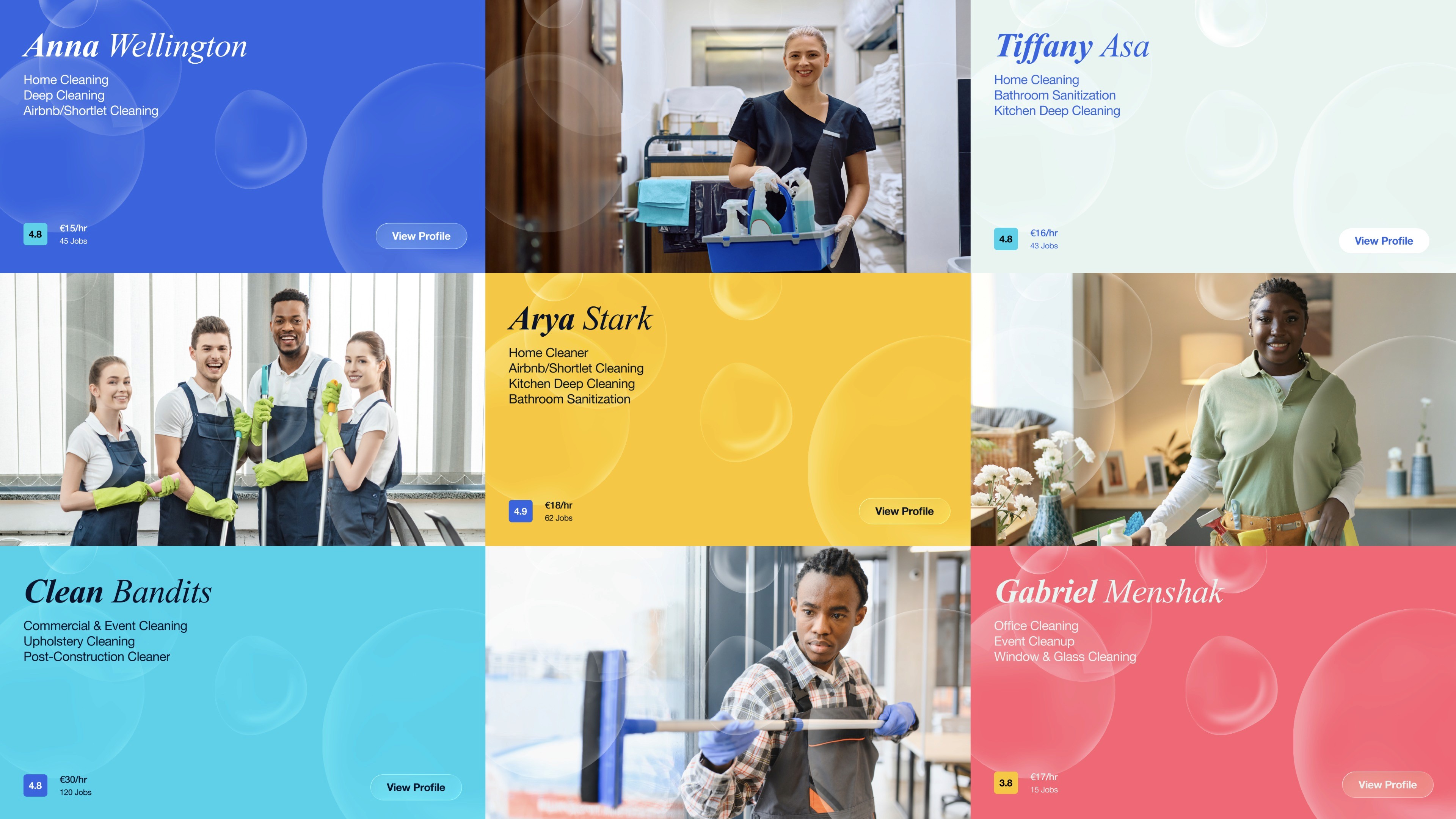 The goal was to transform cleaning from a stressful chore into a smooth, friction-free experience. To do this, We studied how people book cleaners today, explored major service platforms, analyzed marketplace pain points, and reviewed trends across home-service, office care, and ondemand service apps.